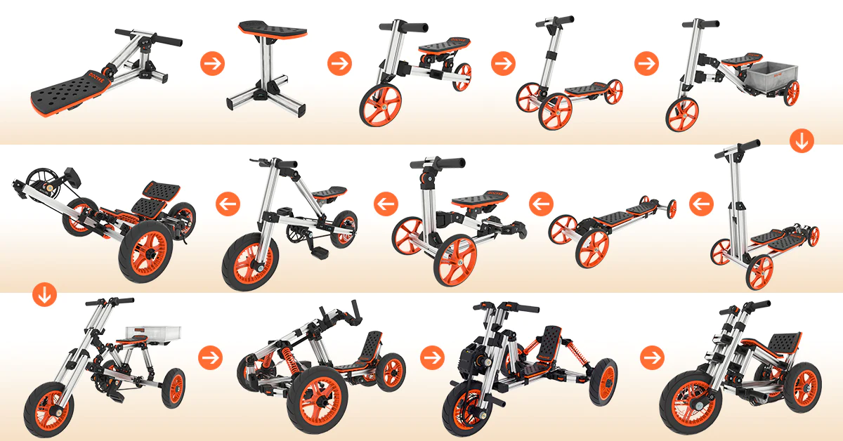 Не будем забывать, что набор iDocyke представляет собой развлечение для всех! Вы и ваш ребенок можете собрать игрушку вместе, и дети могут весело провести время на улице. Конструирование является увлекательным, и включает свободный выбор для создания множества разнообразных игрушек. Более того, когда вашему ребенку надоест трехколесный велосипед или самокат, он сможет собрать велосипед или даже картинг. Так много игрушек для вашего ребенка!